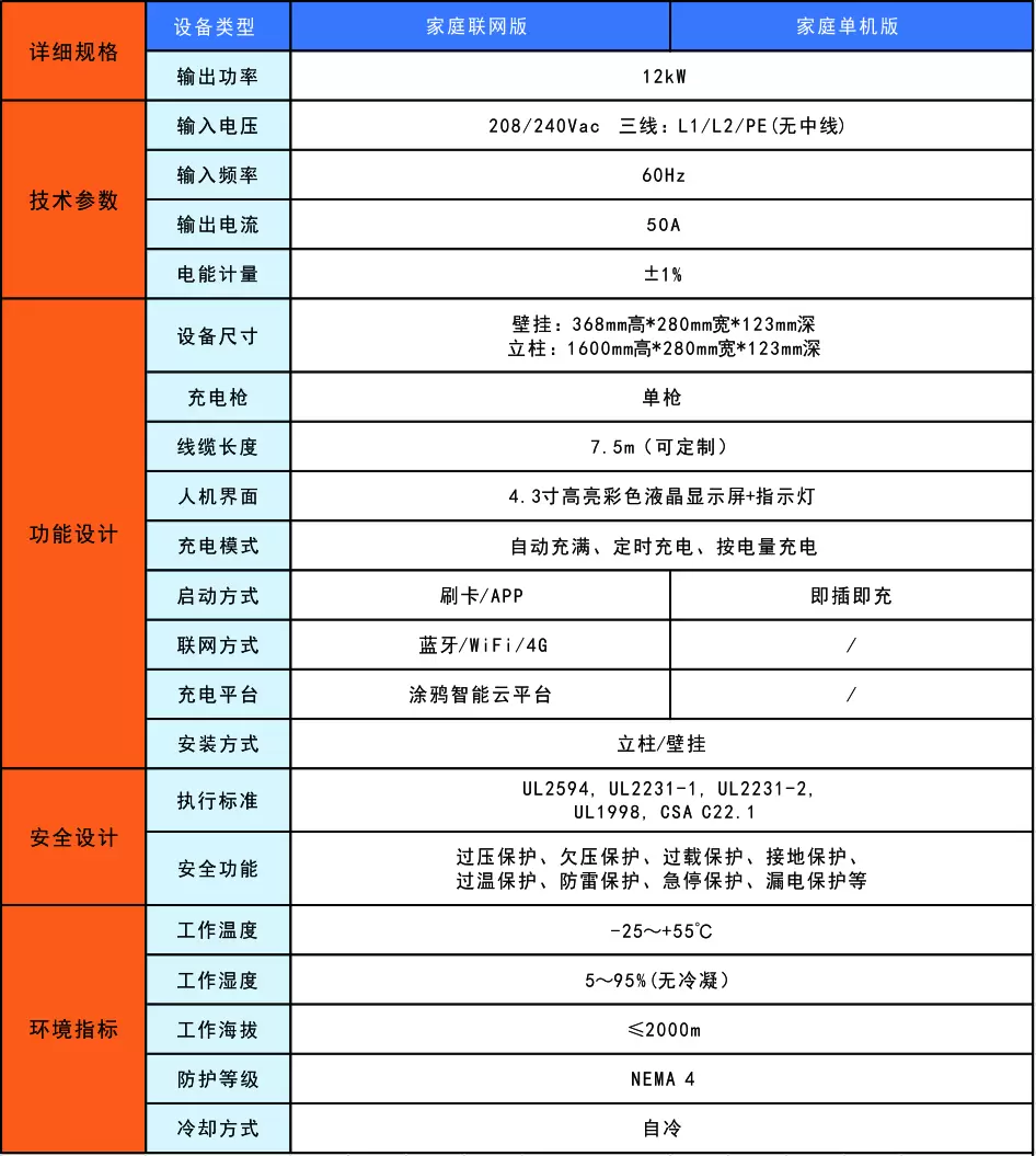 12kW美标交流充电桩严格符合美国执行标准。适用于美国市场占地较少、部署快捷、充电功率大,使用于小区住宅、出租车、公务车、环卫车、物流车等需要交流充电的场合。