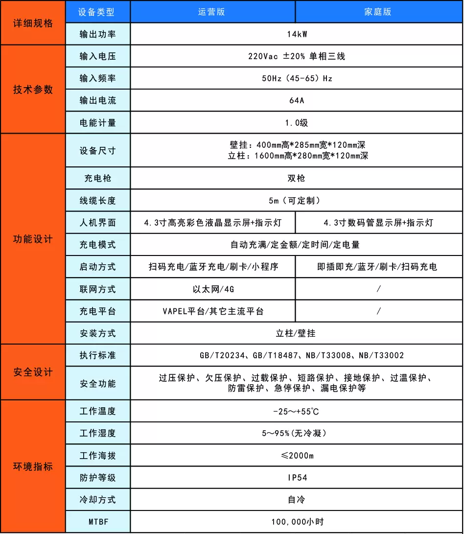 14kW交流充电桩占地较少、部署快捷、使用于住宅小区、工业园区、城市综合体、专用充电站(出租车、公务车、环卫车、物流车等)、公共充电站(私家车、通勤车)等可以较长时间慢速充电的场合。